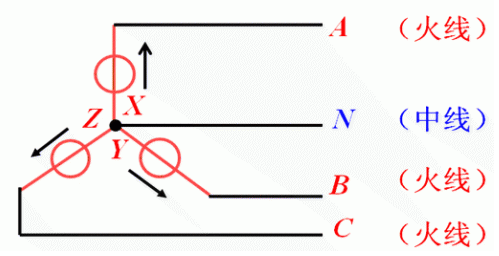 共同接点称为中性点。